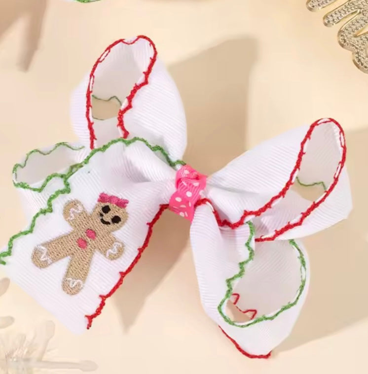 The Holidaze Clips (White & Pink Embroidered Gingerbread)